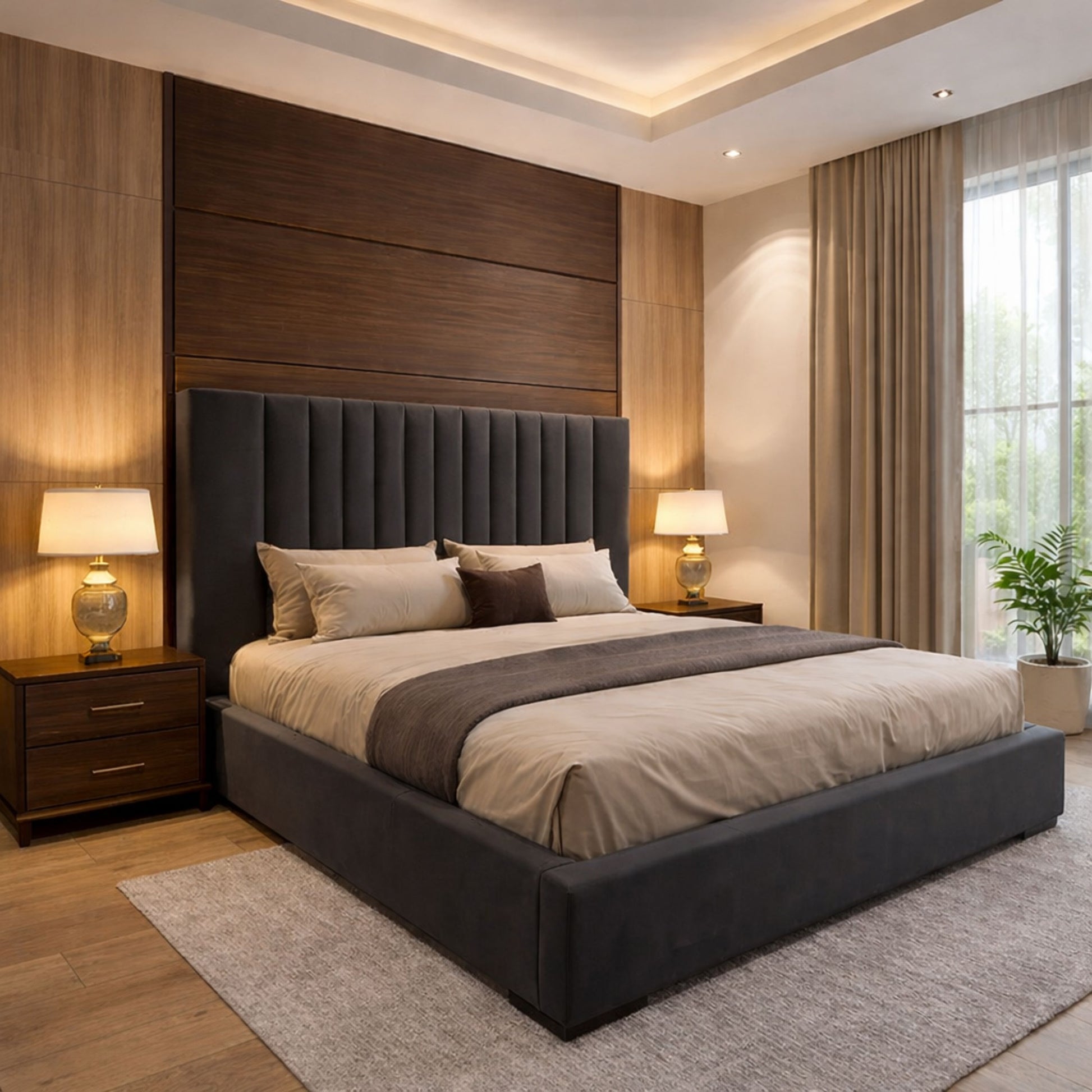 Our premium beds are crafted from high-quality materials including solid wood frames, premium upholstery fabrics, and durable metal components. Each piece is designed for longevity and comfort.