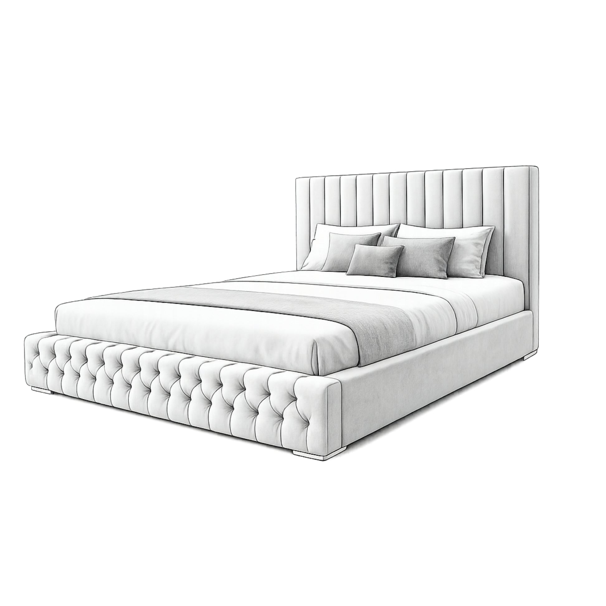 This bed is available with an optional ottoman gas-lift storage system, providing a generous hidden storage space beneath the mattress—ideal for bedding, pillows, clothes, and seasonal items.