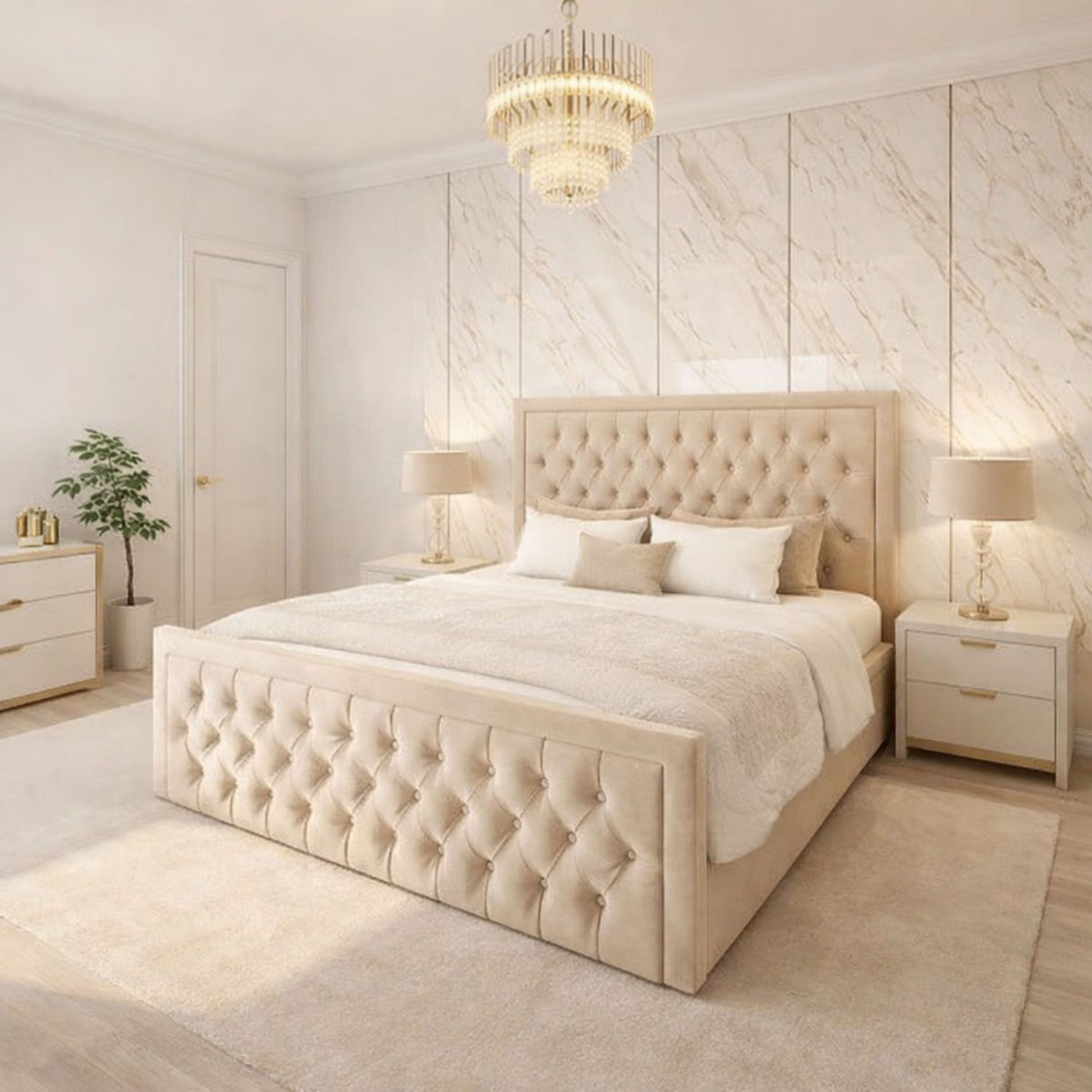 Our premium beds are crafted from high-quality materials including solid wood frames, premium upholstery fabrics, and durable metal components. Each piece is designed for longevity and comfort.