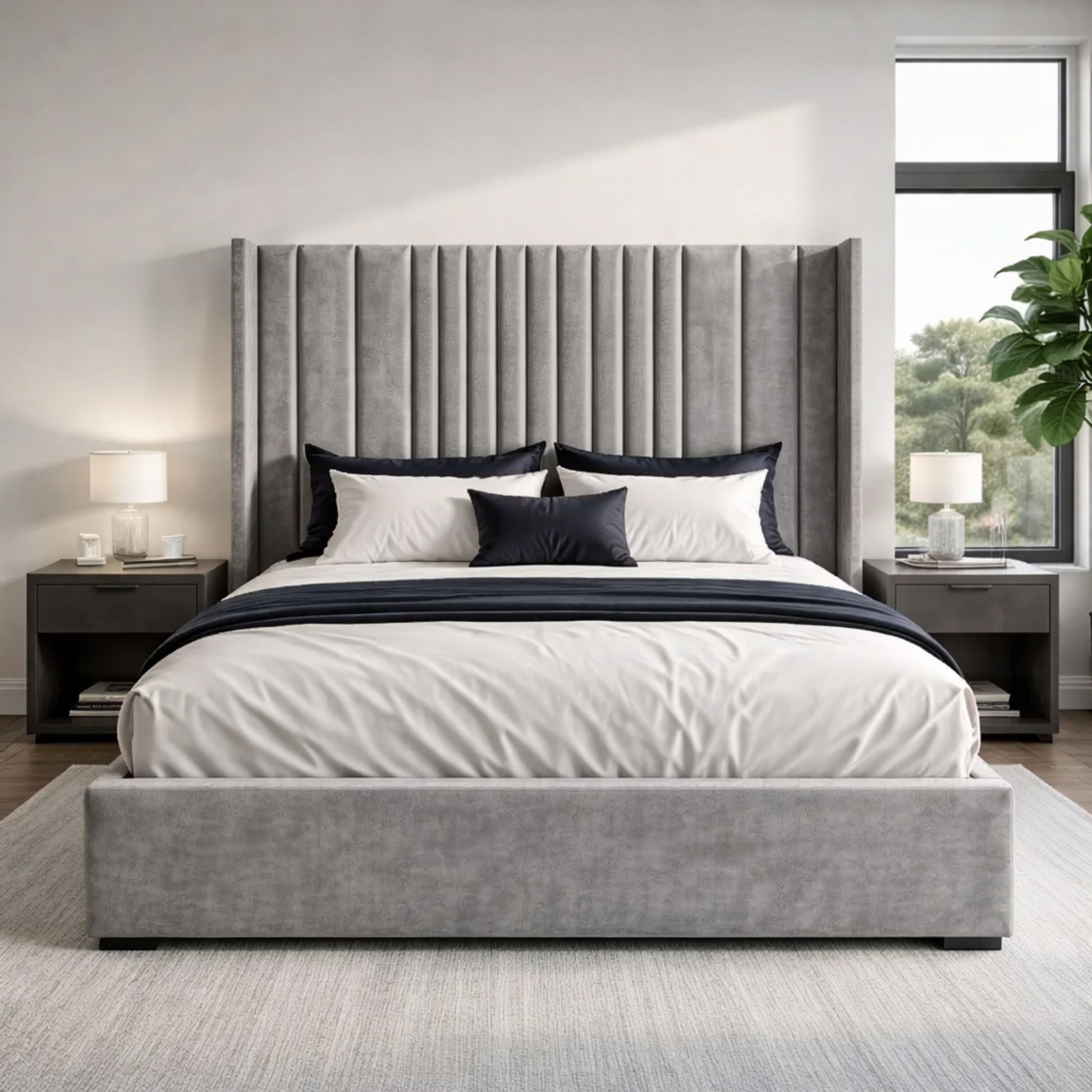 Our premium beds are crafted from high-quality materials including solid wood frames, premium upholstery fabrics, and durable metal components. Each piece is designed for longevity and comfort.